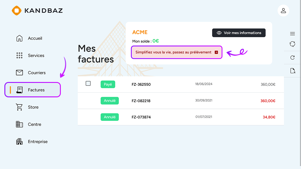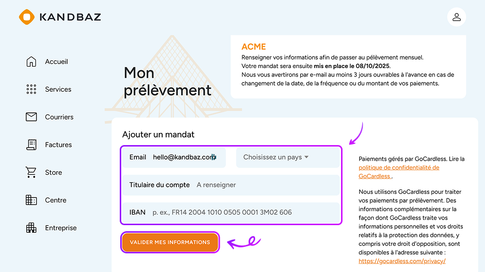 💡 En résumé : en quelques clics depuis MyKandbaz, vous activez le prélèvement automatique SEPA et simplifiez la gestion de vos règlements mensuels.