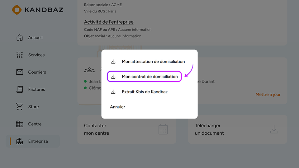 C’est simple : votre contrat de domiciliation est accessible à tout moment depuis votre espace client MyKandbaz.
