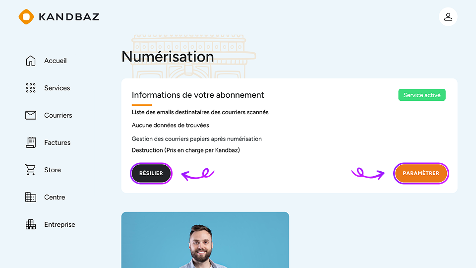 Vous pouvez effectuer directement les changements depuis votre espace client MyKandbaz, en vous rendant dans l’onglet « Services ». L’interface a été pensée pour être simple et rapide à utiliser, même pour des ajustements ponctuels.