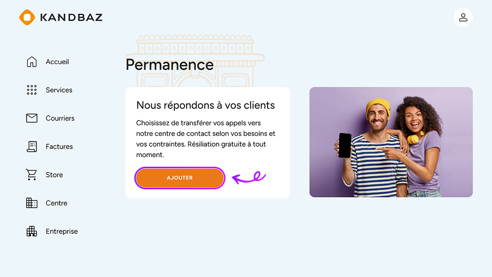 La permanence téléphonique Kandbaz vous permet de disposer d’un numéro professionnel et d’une équipe dédiée à la réception de vos appels, afin d’assurer une gestion optimale de votre communication. La souscription est volontairement simple et accessible à tous nos clients.